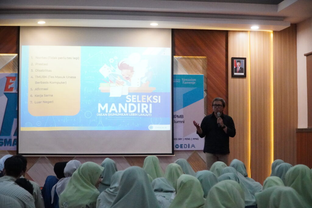 Sesi pemaparan materi pertama di buka oleh PTN UINSA, disusul oleh UNUSA yang memberikan wawasan mendalam mengenai pilihan program studi. Untuk menjaga semangat para peserta, acara diselingi dengan sesi Ice Breaking yang dipandu oleh para alumni agar suasana tetap ceria dan santai.